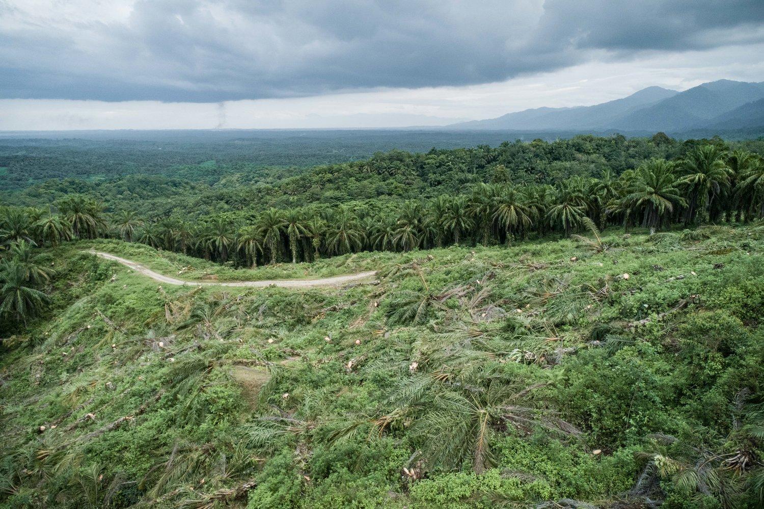 One of its most celebrated installations features a sign directly crafted in a palm oil field currently undergoing reforestation.